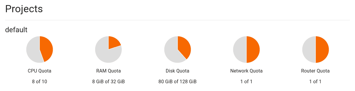 When requesting a deployment, the user must select a project to deploy it into. Projects track the combinerd resource usage of all the deployments within it and ensure that the project's resource quota's are not exceeded. This enables administrators to limit how many resources any given user/group is using. Deployments do not have to be deployed into the same project as the blueprint and in fact this enables a use case where you can have a "General Catalog" project containing blueprints all users can access and then a "<Username>'s Project" for each user to deploy into.